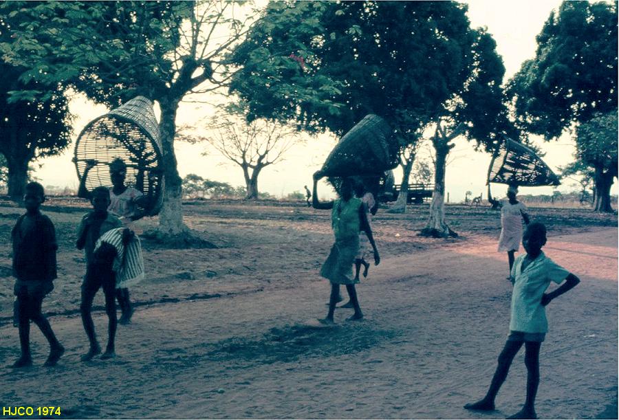 Mulheres de Marimba com artefactos feitos com fibras vegetais, para a pesca nos rios.