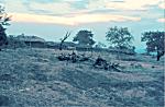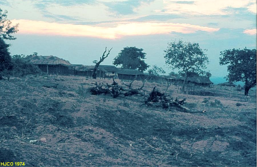 Sanzala de Pedro Macau , em Marimba. Quase todas as cubatas têm as paredes revestidas de barro vermelho.