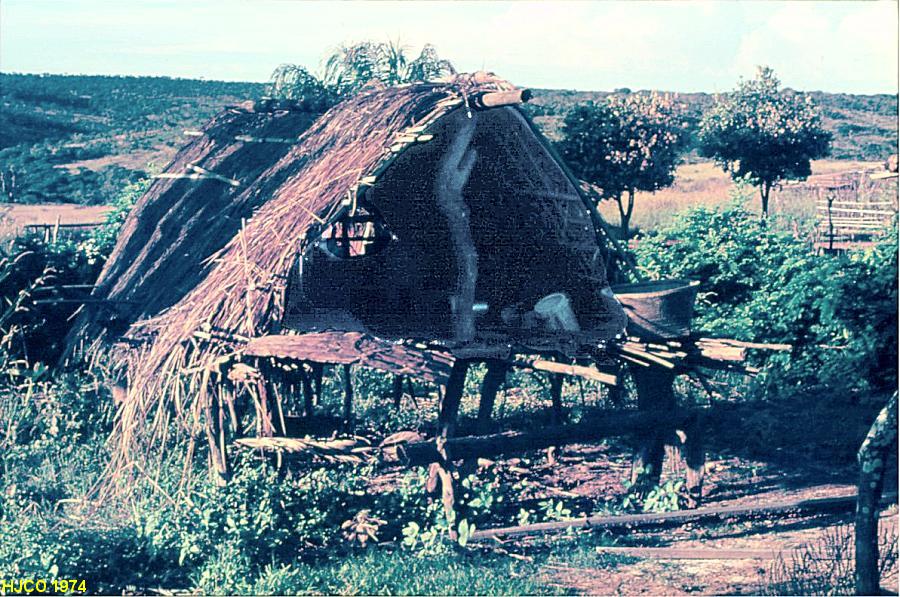 Construção sobre estacas para secagem de algodão.