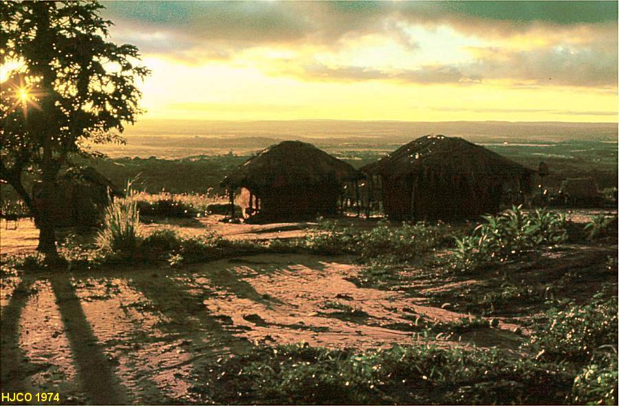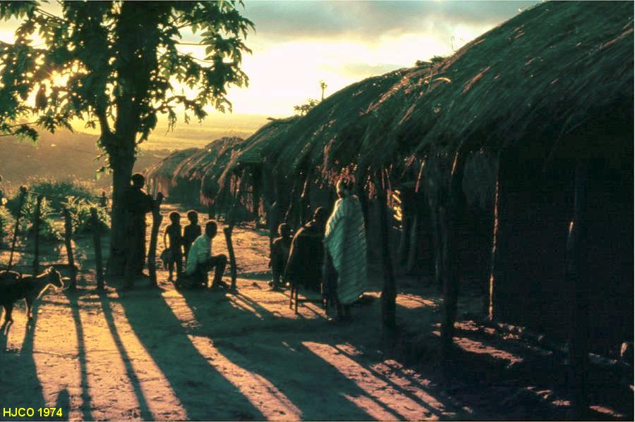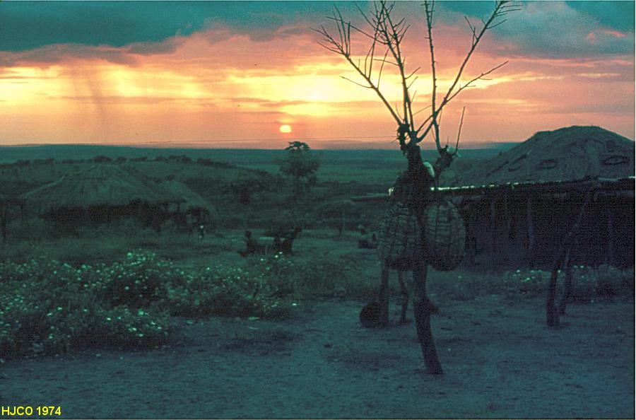 Aspectos da sanzala de Marimba ao pôr do sol. Ficheiro: