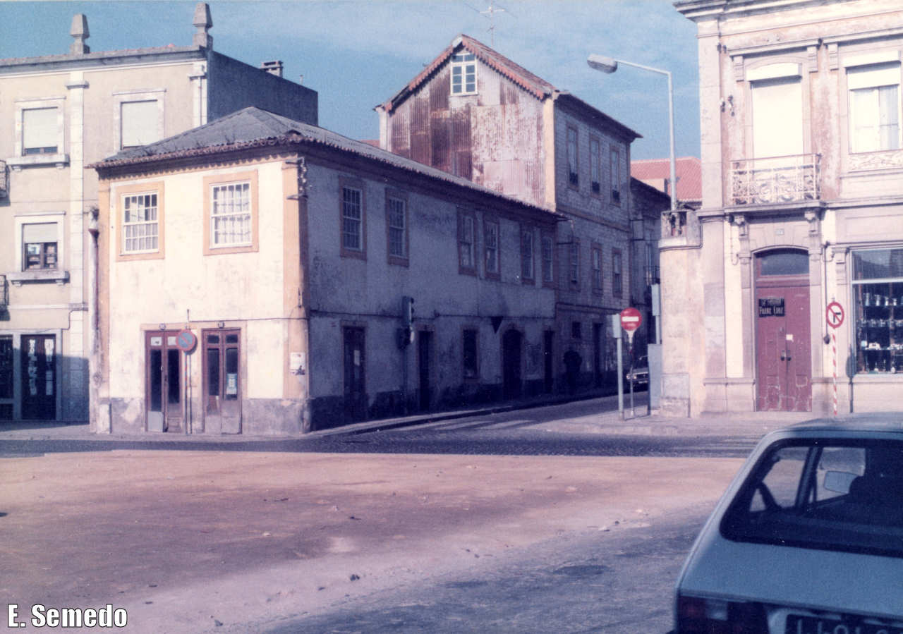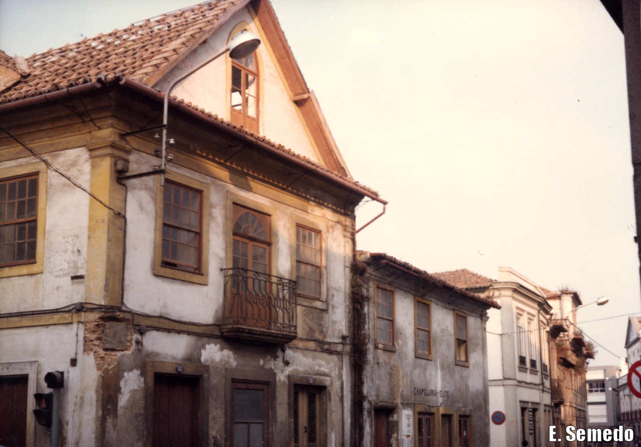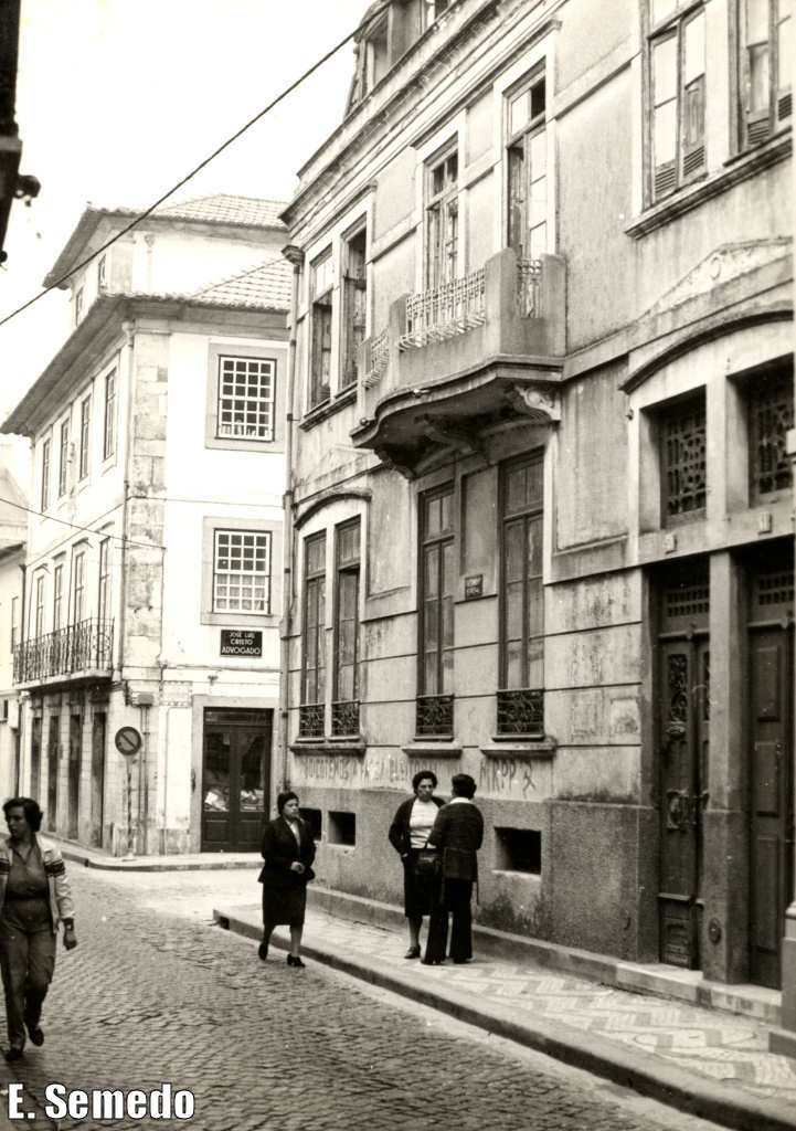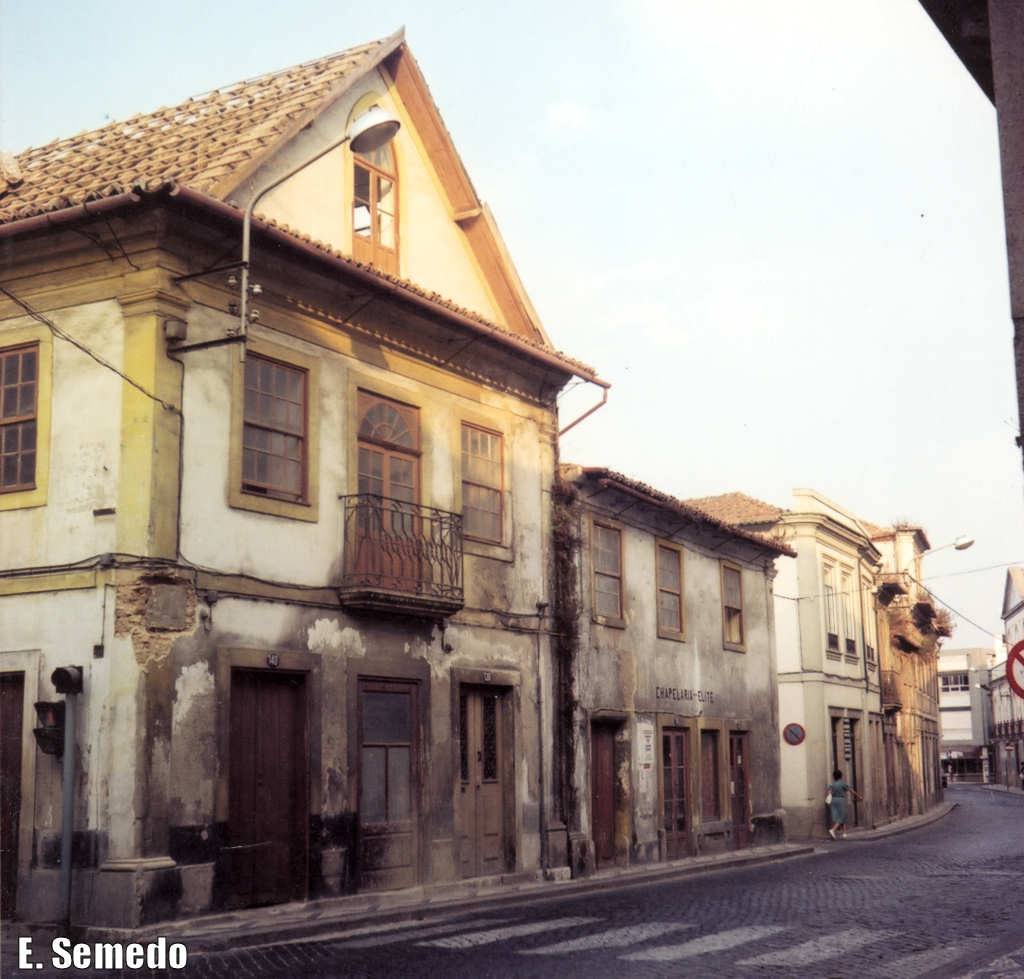 30. Esquina da Rua Santa Joana com a dos Combatentes da Grande Guerra, em Dezembro de 1985, À esquerda, a casa de David Cristo; por detrás, a Casa Martelo; à direita, a esquina da Mercearia Albino Miranda.