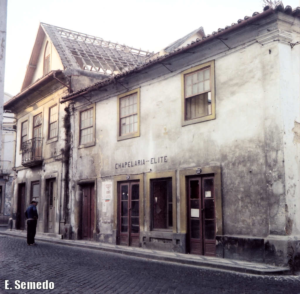 31. As quatro imagens seguintes mostram-nos dois edifícios demolidos em 1985. Na chapelaria Elite esteve também instalada, em certa altura, a Livraria Vieira da Cunha. Fotos de Outubro de 1985.