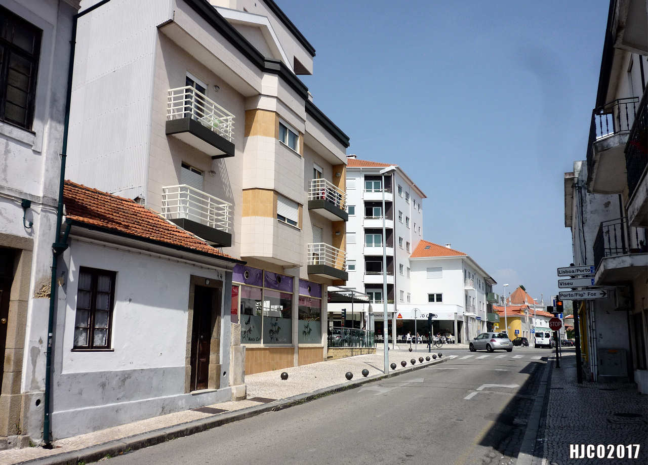 Final da Rua de Sá e começo, após os semáforos, da Rua Hintze Ribeiro, vendo-se, ao fundo, a cúpula da Capela do Senhor das Barrocas. Fotografia tirada em 24-4-2017.
