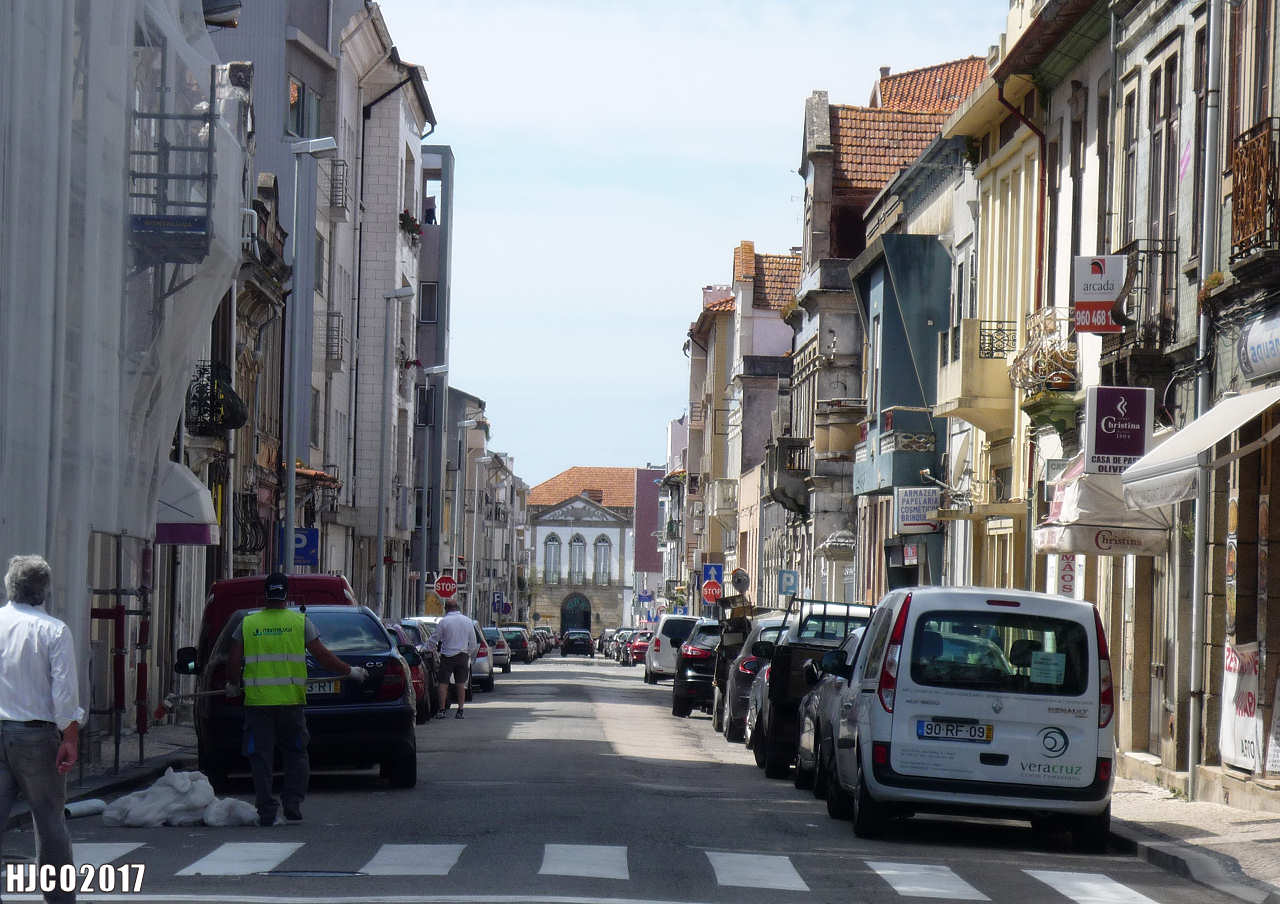 Ampliação da imagem anterior, que nos mostra como a entrada principal do edifício do quartel está perfeitamente centrada com o eixo da rua que o liga à Estação dos Caminhos de Ferro.
