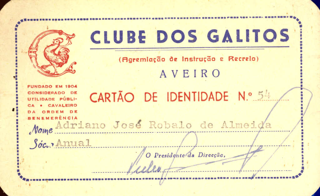 Emblema dos Galitos que figurava nas camisolas de uma equipa de futebol de 1921. Jogador M�rio Duarte no Rossio, em Aveiro.