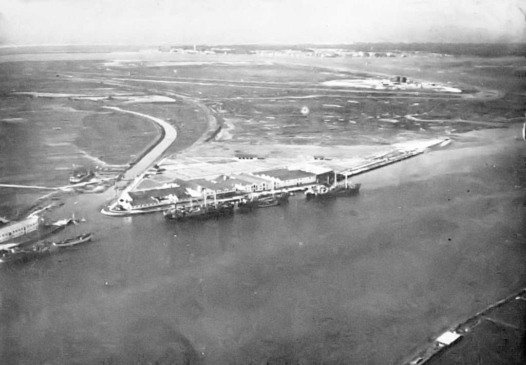 Vista aérea das instalações industriais da E. P. A., na Gafanha, em 1957.