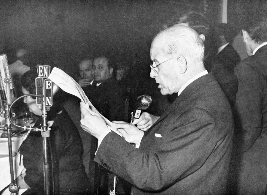 Por mim, pessoalmente, em nome dos Conselhos de Gerência e Fiscal e de todos os restantes sócios da Empresa de Pesca de Aveiro, tenho o maior prazer em endereçar a V. Ex.ª os nossos mais respeitosos cumprimentos e melhores agradecimentos por se ter dignado dar-nos a honra de visitar as nossas instalações e inaugurar oficialmente as nossas novas secções: Fábrica de Conservas de Peixe e Secagem Artificial de Bacalhau.