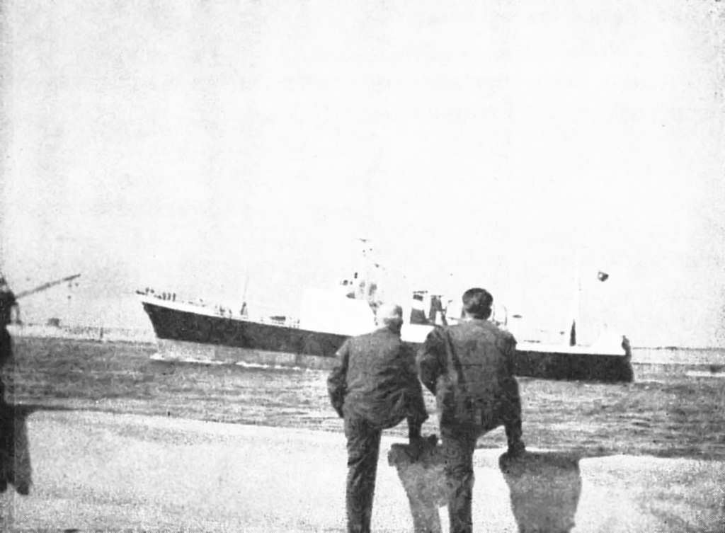 No molhe da barra, os Senhores Egas Salgueiro e Henrique Moutela, das firmas armadora e construtora, presenciaram a saída do navio, marcando uma presença bem significativa de fé nas possibilidades de mais esta unidade.