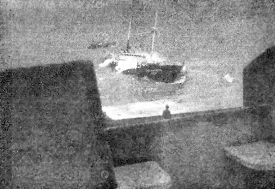 Pouco tempo lá se demoraram. Depois de passado o novo cabo de vaivém, o Sr. Comandante Carvalho Pereira ordenou que mais ninguém fosse para bordo, pois iam regressar a terra, devido ao mau cariz do mar nada deixar adiantar nas diligências pretendidas.