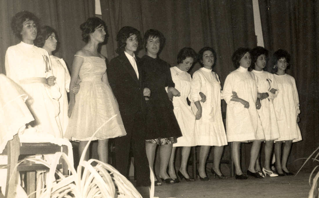 às colegas do 2.º Ano. Peça da turma A do 1º Ano. Março 1962.»