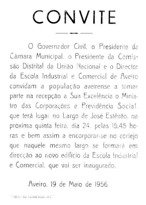 novas instalações da escola inaugurada no dia 24 de Maio de 1956. |