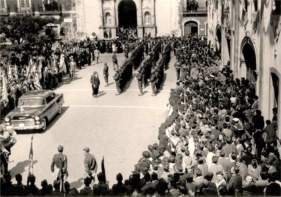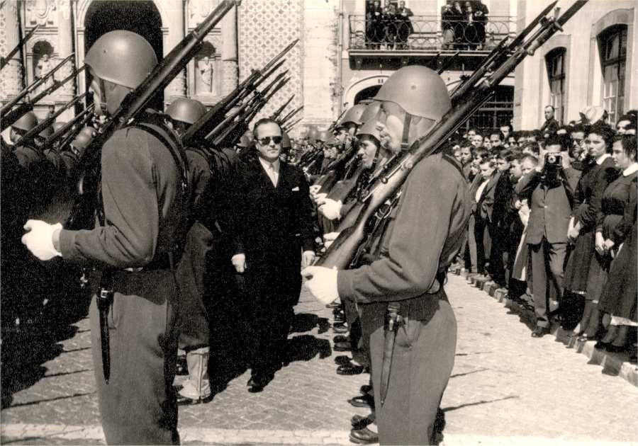 Dr. Veiga de Macedo, passa revista à guarda de honra colocada à