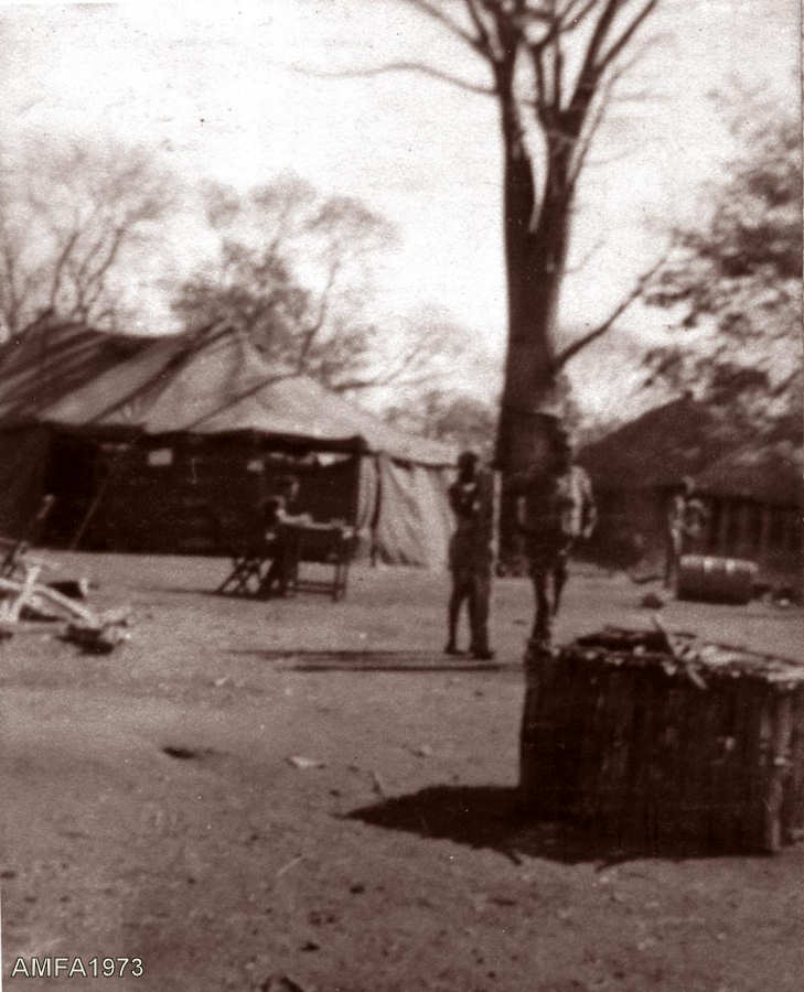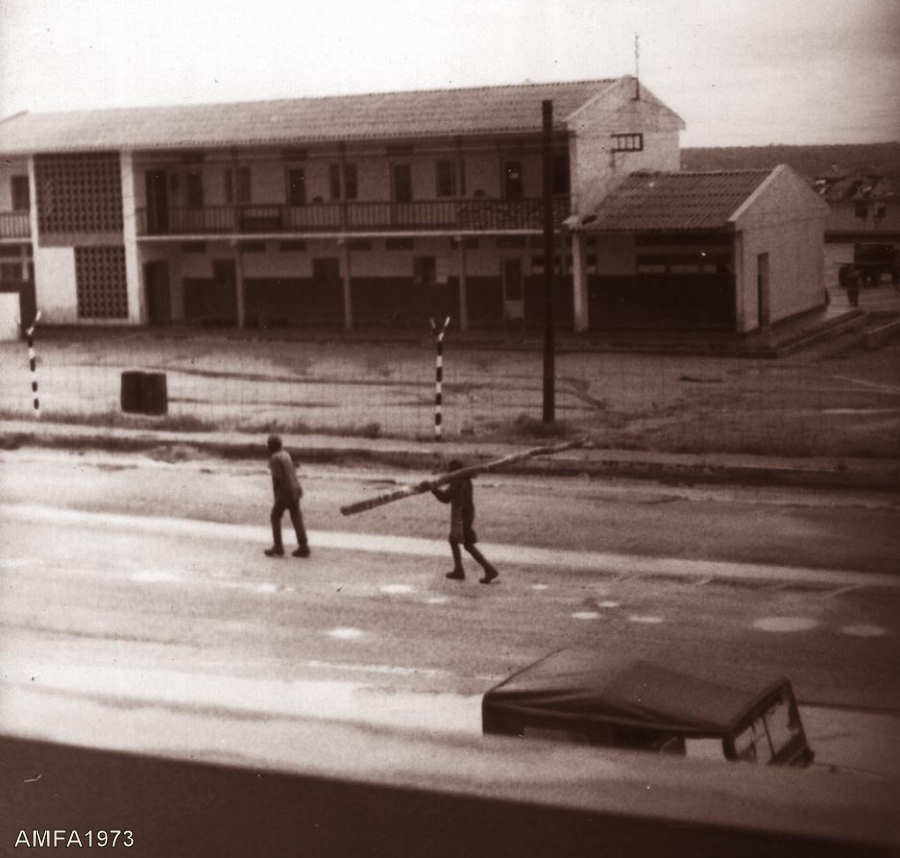 No ataque de Janeiro de 1974 houve vários edifícios destruídos parcialmente por foguetes 122 mm. Foi o caso desta palhota.