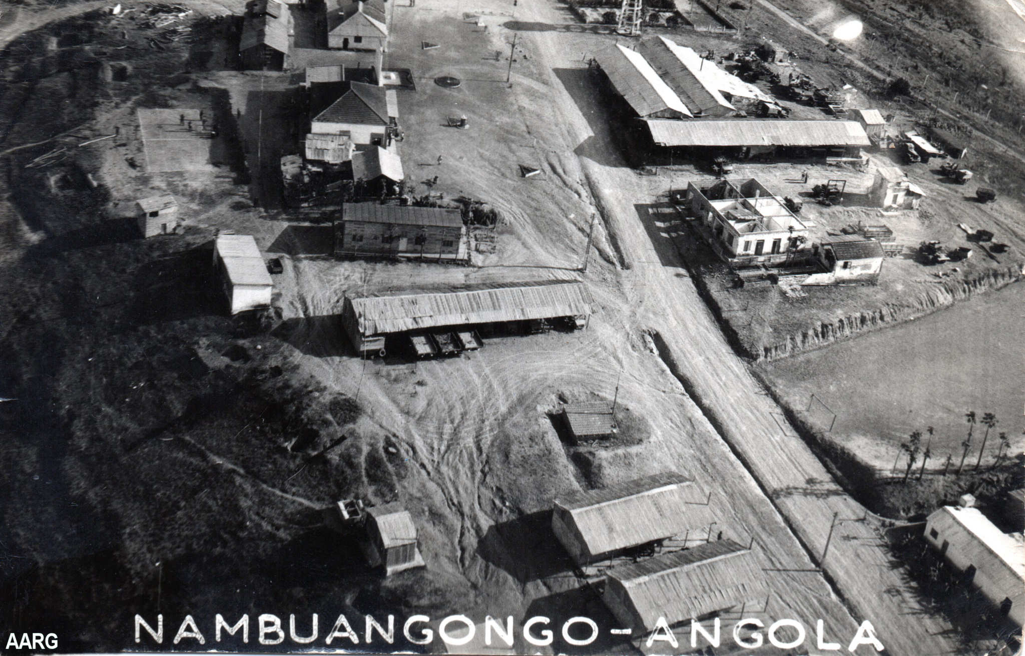 Vista aérea de Nambuangongo. Foto em alta resolução, que mostra pormenores do aquartelamento, incluindo os campos de jogos: futebol e outros.