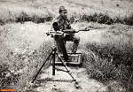 Com uma metralhadora junto à