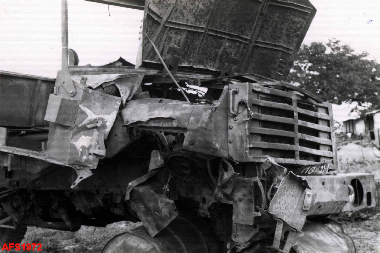 viatura destruída por uma mina na zona de