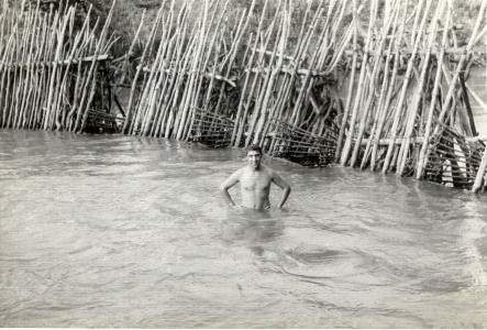 Banho no rio onde se efectuava