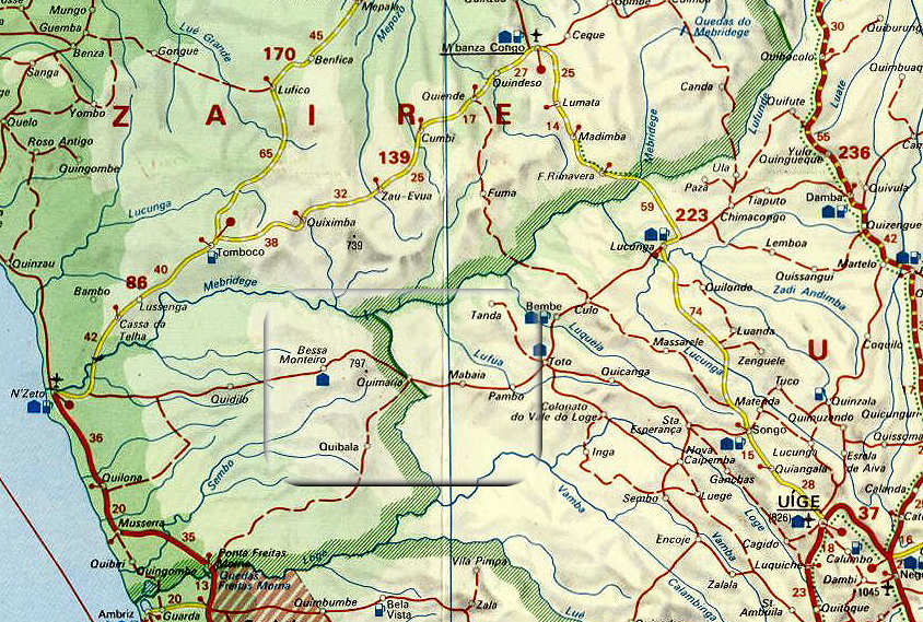 Mapa de Angola com a localização de Quimaria no sector de Uíje.