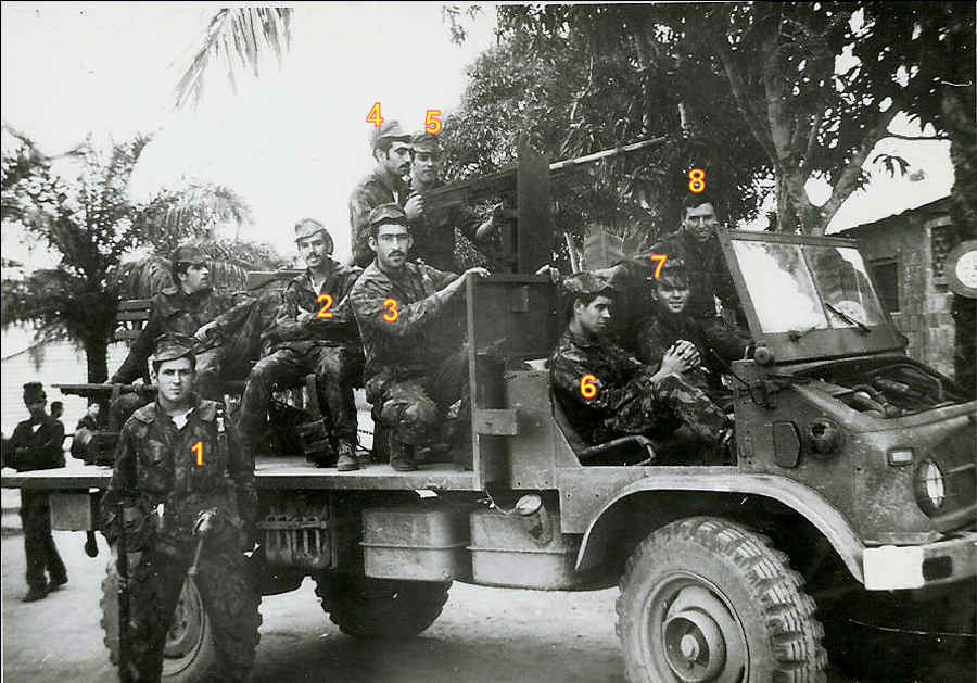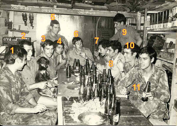 Momento de convívio na oficina auto da Companhia de Caçadores 2695. NOMES: 1.???; 2.???; 3???; 4.???; 5.???; 6.???; 7.???; 8.???; 9.???; 10.???; 11.???.