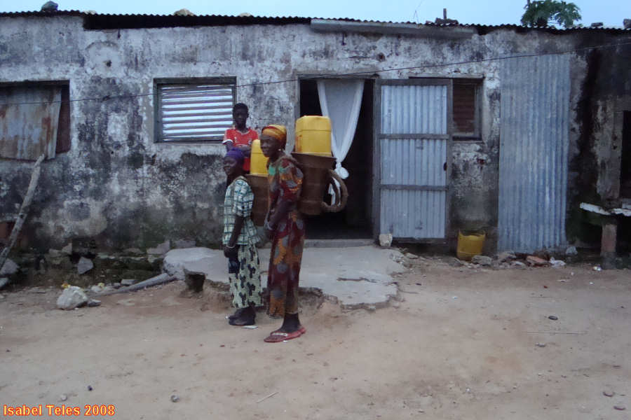 A minha cubata, outrora o bar de David Subtil, a partir da entrada das traseiras, com as minhas abastecedoras de água. Sim é Angola profunda e sem stress.