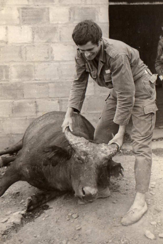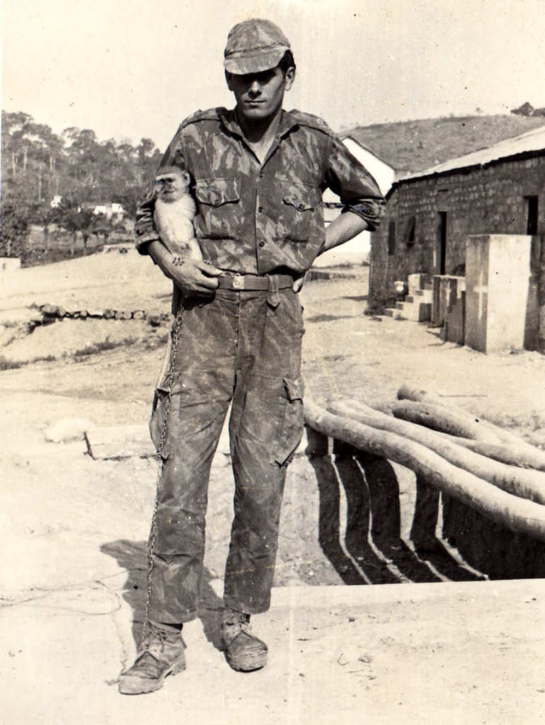 José Manuel Figueira Sousa (o «Trezentos» para os amigos), Soldado Cozinheiro da Companhia de Caçadores 3387 no meio do capim.
