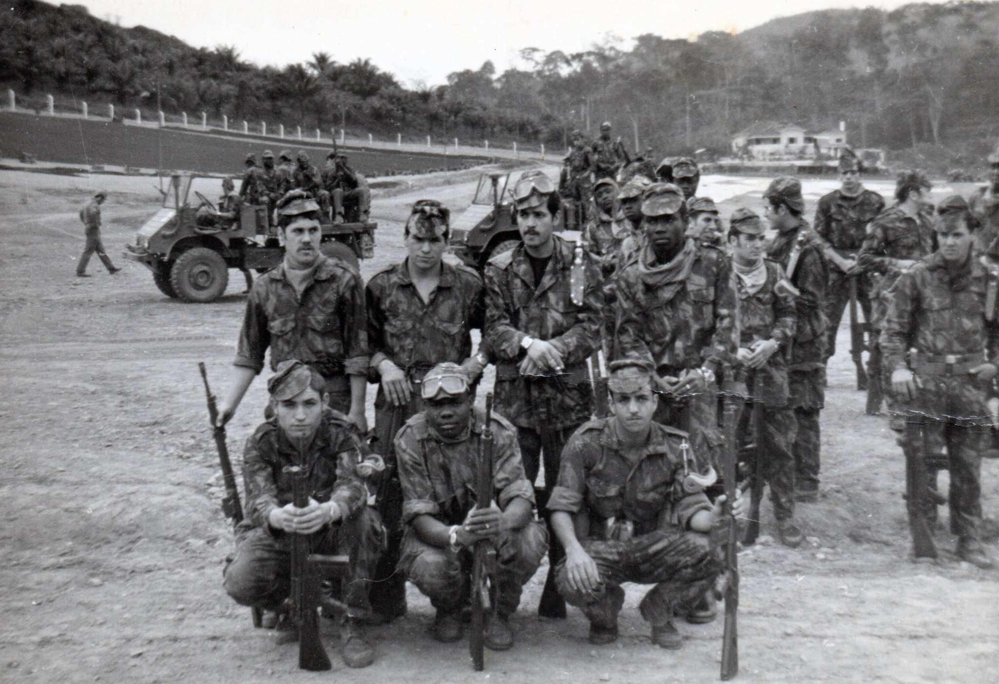 3.ª Companhia do Batalhão de Caçadores 4514. Foto tirada numa operação na zona de Quixico em 1974