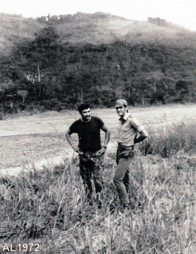 Furriéis Ferreira e Artur Lopes, pertencentes à Companhia de Caçadores 104-72, durante  o período de protecção à construção da pista de aviação.
