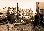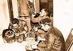 Fotografia tirada num momento de convívio, no dia de S. João, festejado com camarão e cerveja. Vêem-se, da direita para a esquerda: o capelão Emílio Gaio, o capitão Glória Dias, com a «bojeca» na boca, e o furriel Dias Pereira.