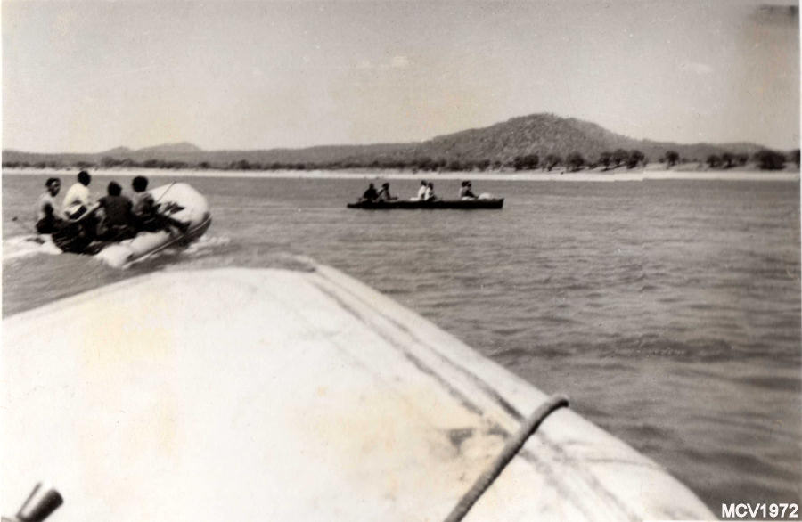 Fuzileiros Especiais n.º 7 em operação no Rio Zambeze. Ao fundo, a ponte sobre o rio.