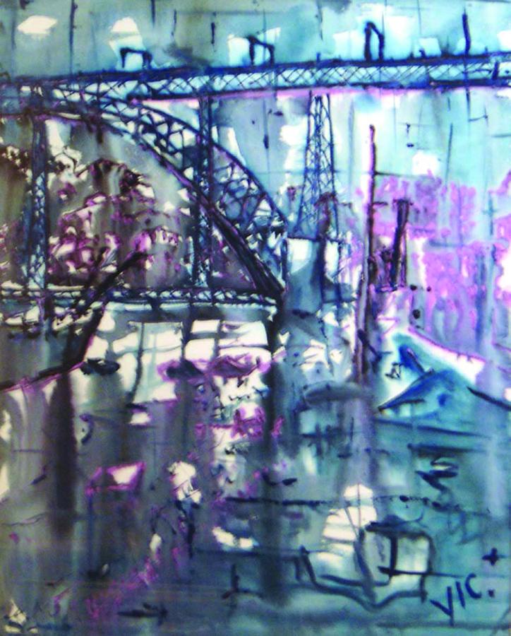ponte D. Luís (1947) - aguarela  (44,0x55,0)   sem título - tinta plástica sobre tela  (50,0x73,0)