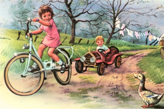 os amiguinhos de Anita que fazem uma corrida de triciclo em