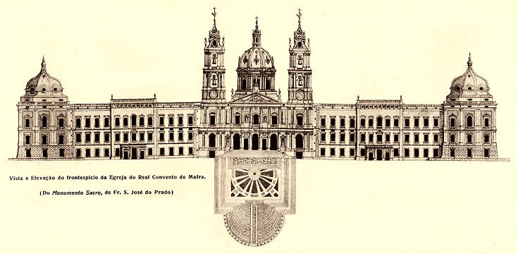 VISTA E ELEVAÇÃO DO FRONTISPÍCIO DA IGREJA DO REAL CONVENTO
