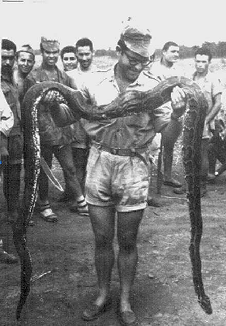 No dia seguinte, lembrei-me de tirar uma fotografia com a cobra. Era um lindo animal – depois de morto! Media 3,80m de comprimento. Toda a Companhia apareceu querendo tirar uma fotografia com o bicho. Gastei um rolo inteiro, o único que tinha. Foi revelado e posto a secar.
