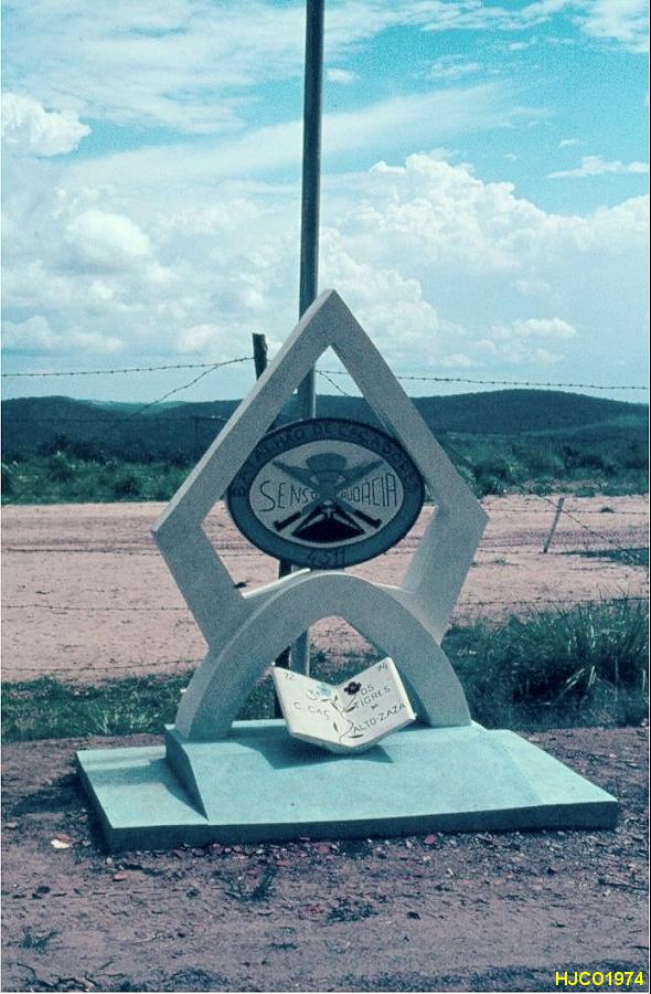 O monumento evocando a passagem da Terceira Companhia do Batalhão de Caçadores 4511 pelo Alto Zaza, com o emblema elíptico ao centro, com os dizeres «Senso e Audácia».  (Slide refª 80)