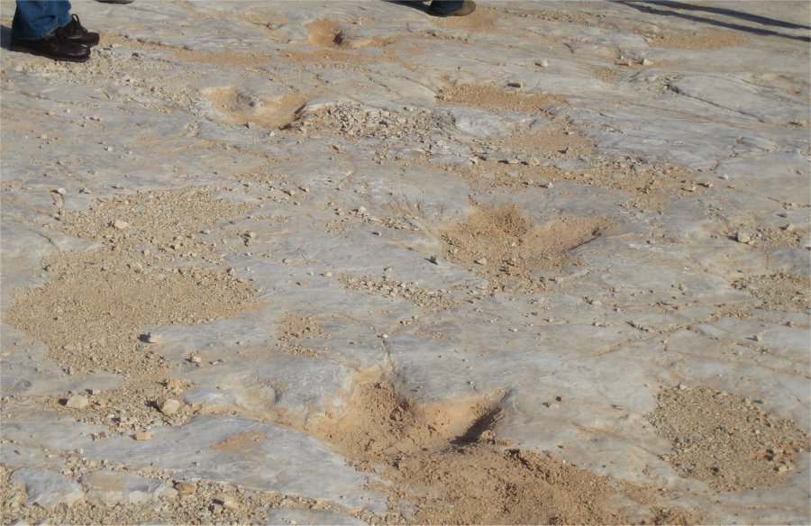 com vestígios das pegadas de dinossauros. Ficheiro: