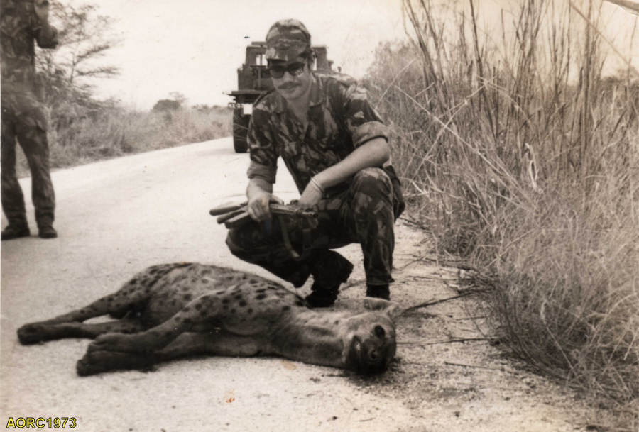 Hiena morta perto do quartel