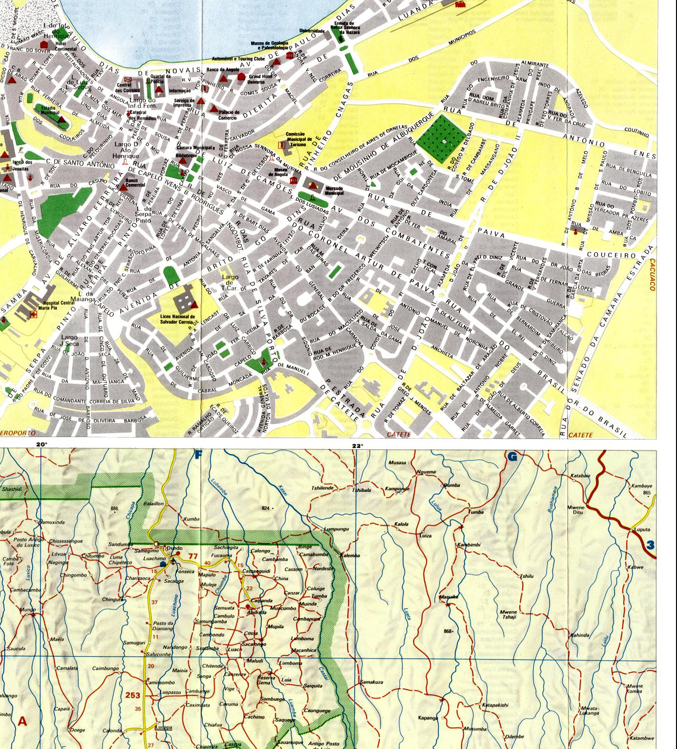 Zona norte de Angola entre Luanda e o rio Zaire, com toda a rede viária na década de 1970, abrangendo parte de Carmona (actual Uíge) e S. Salvador.