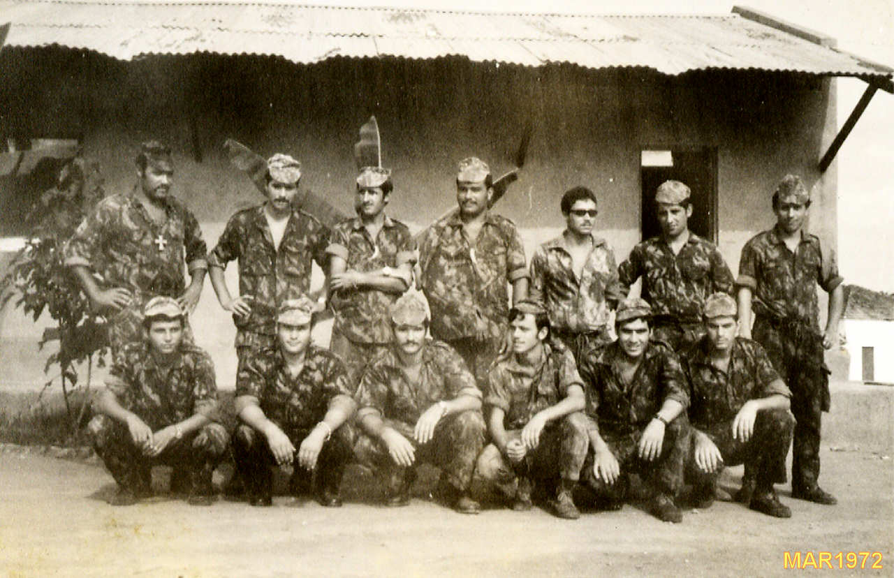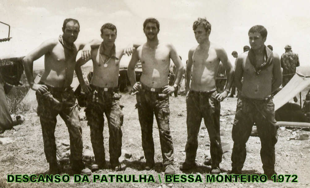 Descanso após uma patrulha na zona. Da esq.ª para a dtª: ???, ???, ??? , ???  e ???.