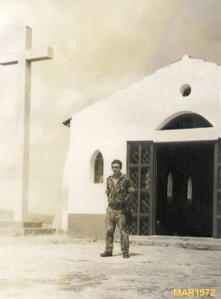 Em cima de uma ponte em vigia para passagem de uma coluna em 1972.