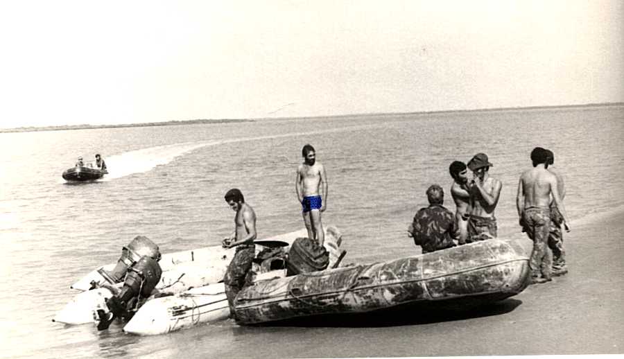 Patrulha de botes na foz do rio