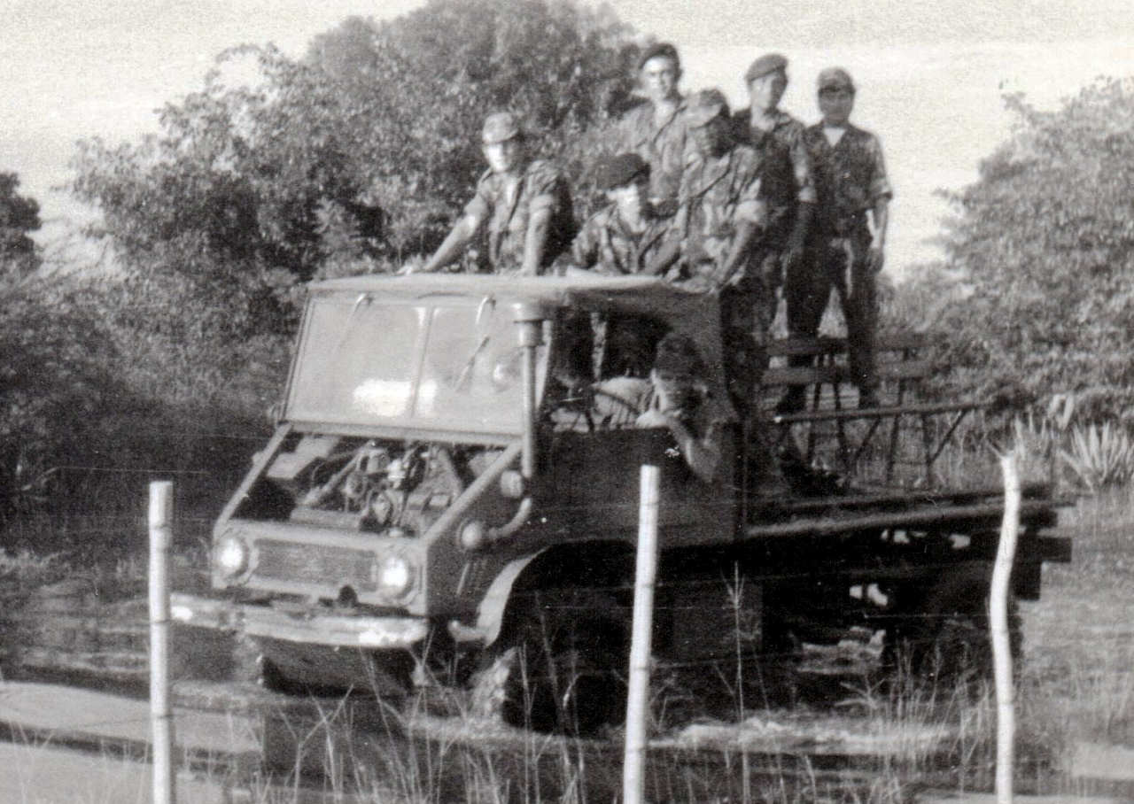 Companhia de Caçadores 3387. Atrás, vê-se o fumo