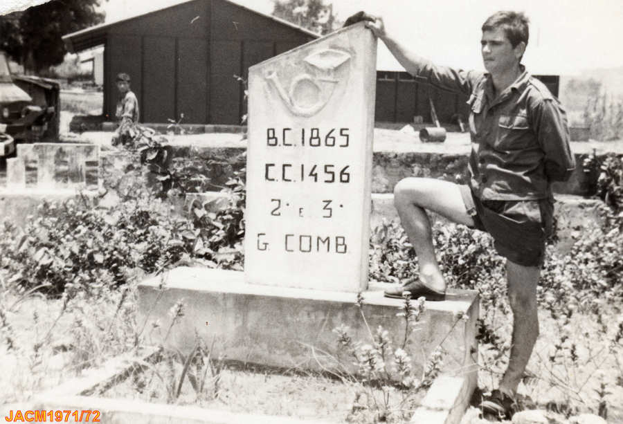 Sentado no monumento do Batalhão de Artilharia 1926 da Companhia de Artilharia 1769, existente na avenida de mangas à entrada do Cuango.