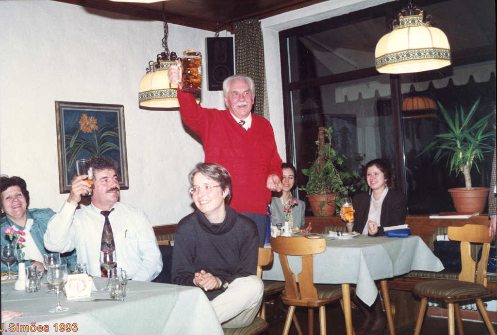 Kolping. No centro da mesa, a bandeira do país dos