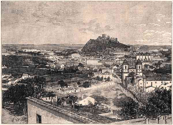 Aspecto geral de Leiria - Gravura de Cazellas, segundo Photographia de Arnaldo da Fonseca. Dimensões: 18x13 cm. - Colecção R. Gaspar.