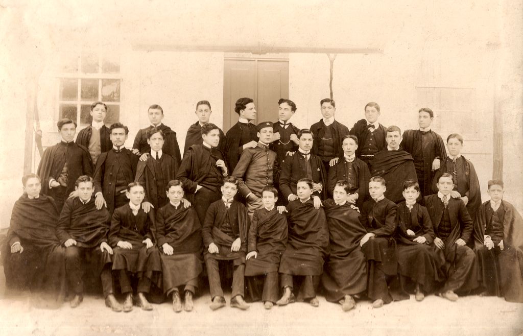 1. 5º Ano - 1908 - Turma do 5º Ano do Liceu de Aveiro em 1908, vendo-se, na fila superior, José Pereira Tavares, o 4º a contar da esquerda, em pose de perfil. (Foto cedida por D. Maria Virgínia)