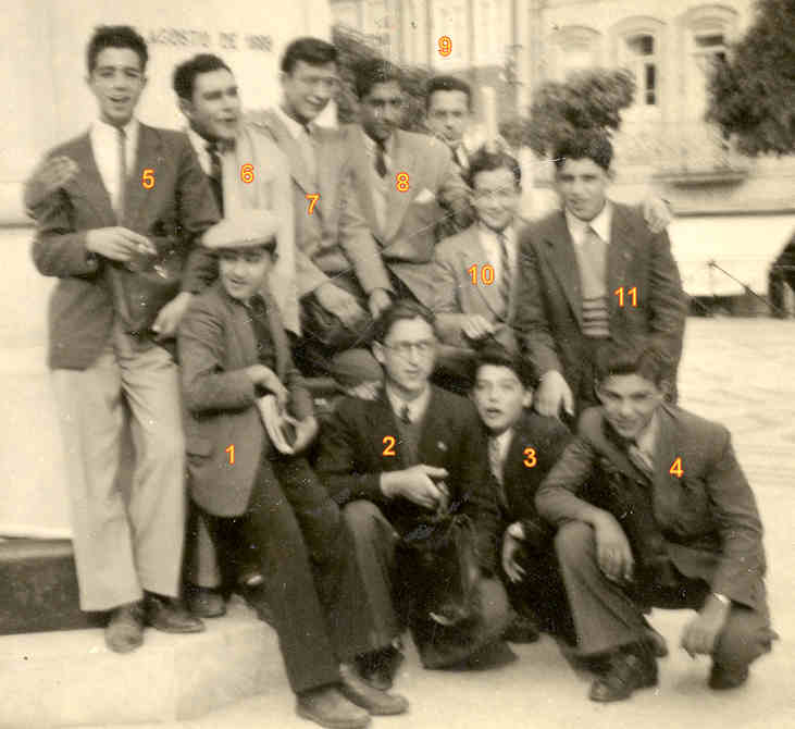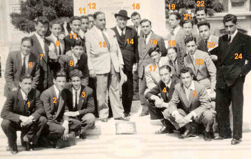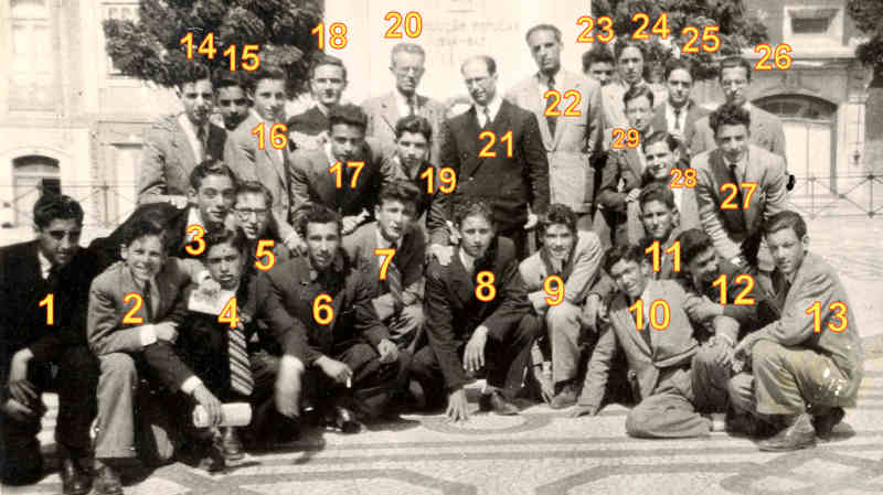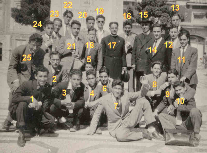 «1949 - Com alguns colegas do 4º e 5º ano do Liceu.» Foto 6x9 cm de Ulisses Pereira.