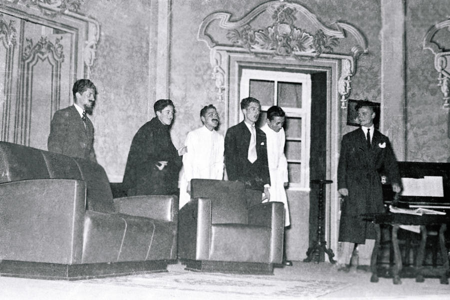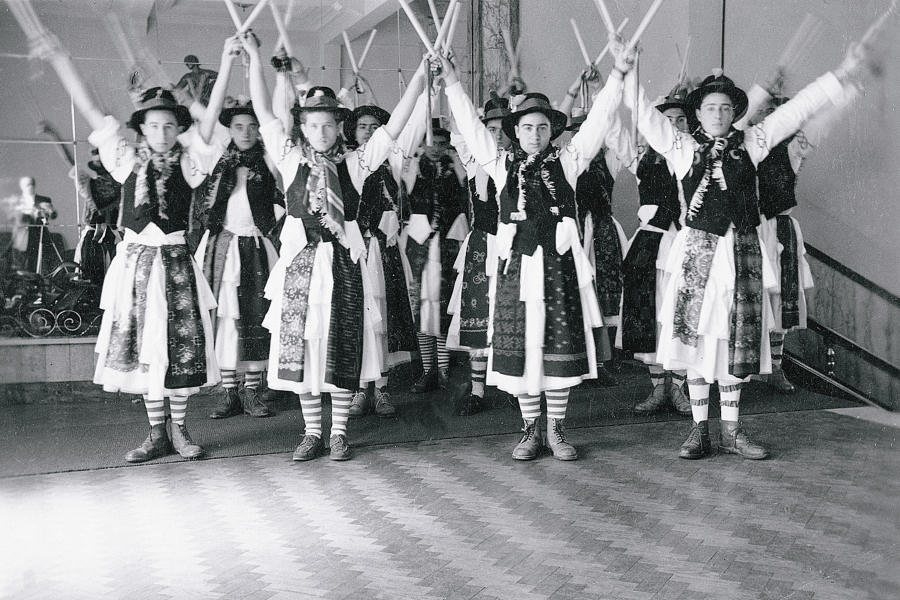 5 - Peça "A Sonata" de Chagas Roquete, em 8 de Abril. Fotografia de Diamantino Dias NOMES   6 - Peça "A Sonata" de Chagas Roquete, em 8 de Abril. Fotografia de Diamantino Dias NOMES   7- Dança dos Pauliteiros. Récita de 8 de Abril - NOMES Fotografia de Diamantino Dias   8 - Alunas do Liceu de Aveiro, junto ao monumento a José Estêvão. Ver NOMES. Fotografia no formato 6x9 cm cedida por Dr. Rogério Leitão.