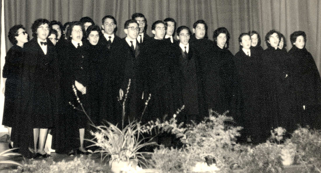 11. Comissão do jantar de finalistas do Liceu. Esq.>Dta: Joaquim Carretas, Maria Augusta Rocha, Alfredo Rodrigues, Maria José, Manuel Eduardo Neto.