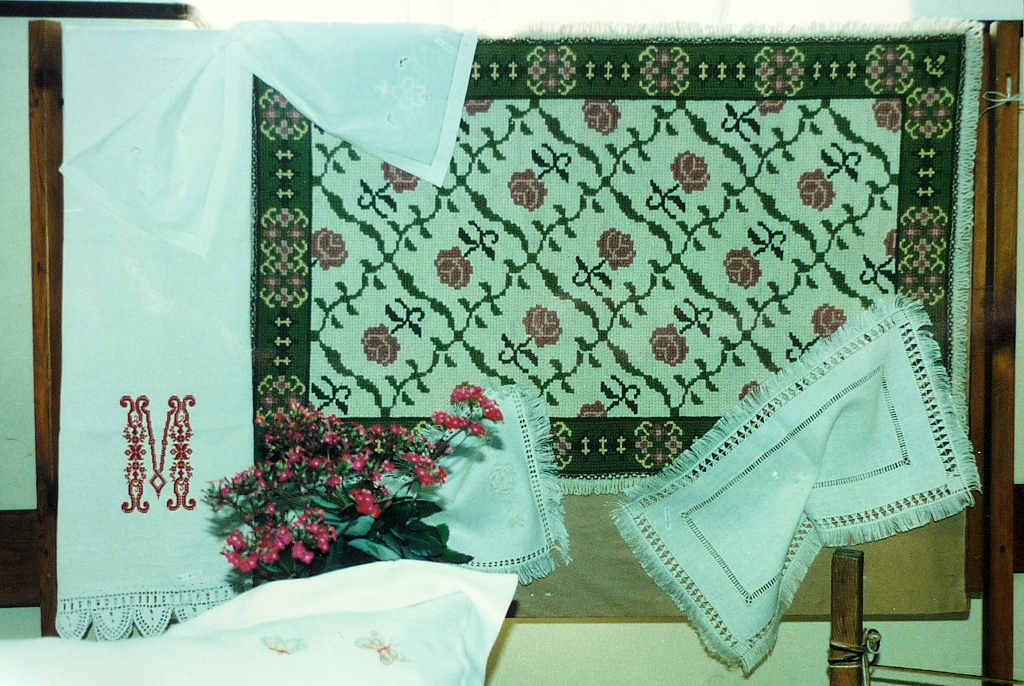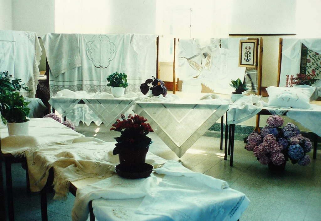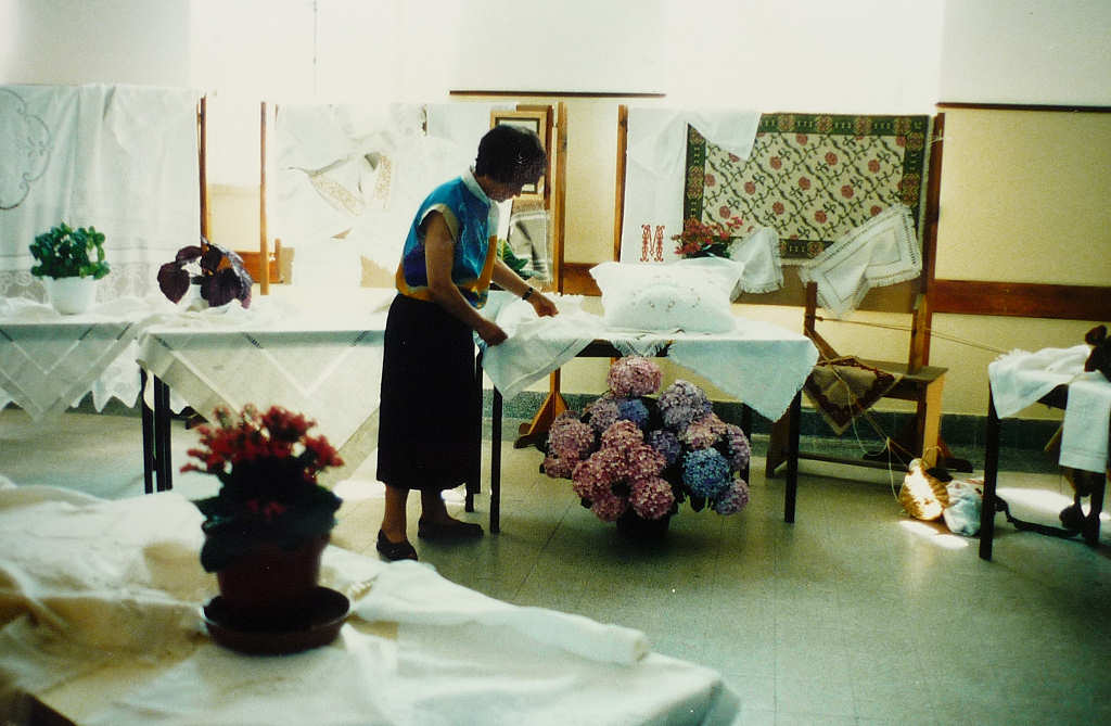 * Esta oficina de têxteis tinha a designação de «Oficina de Tapeçaria e Bordado Artístico para a Comunidade Escolar». Teve o seu início no ano lectivo de 1993/94, orientada pela professora Rosa Mancelos, e terminou em 1995/96, tendo-se mantido até 2002 apenas para alunos e professores. As imagens mostram aspectos do trabalho e exposição no átrio da escola, bem como o lanche de encerramento de actividades no Bar dos Professores, em 20 de Junho de 1994.
