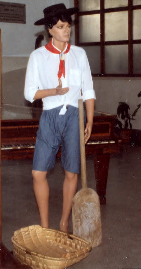 ● lenço tabaqueiro no pescoço, preso por uma caixa